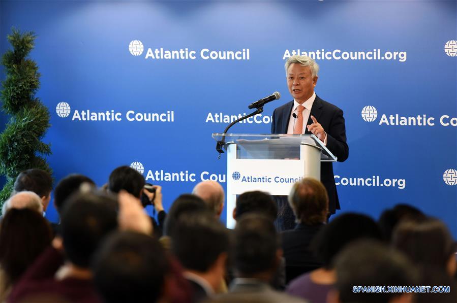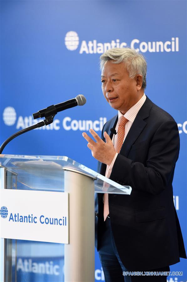 WASHINGTON D.C., abril 25, 2017 (Xinhua) -- Imagen del 24 de abril de 2017 de Jin Liqun, presidente del Banco Asiático de Inversión en Infraestructura (BAII), pronunciando un discurso en el Consejo Atlántico, un comité de estudios estadounidense basado en Washington, en Washington D.C., Estados Unidos de América. Como nueva institución internacional multilateral centrada exclusivamente en las infraestructuras, el BAII debería convertirse en una plataforma para la cooperación entre China y Estados Unidos de América, aseguró el lunes el presidente de la entidad, Jin Liqun. (Xinhua/Yin Bogu)