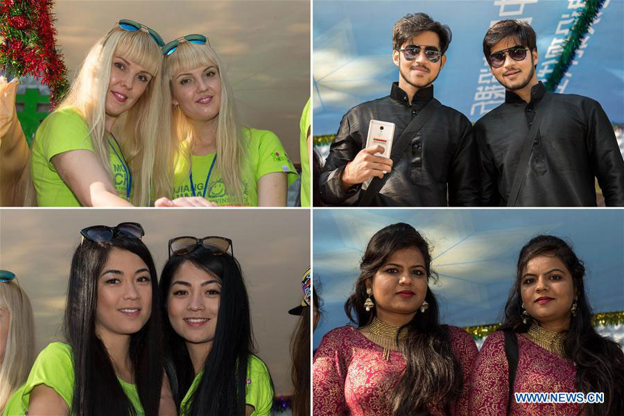 Esta foto combinada muestra a cuatro pares de gemelos en un festival anual de Mojiang, provincia de Yunnan, el 1 de mayo de 2017. [Foto / Xinhua]