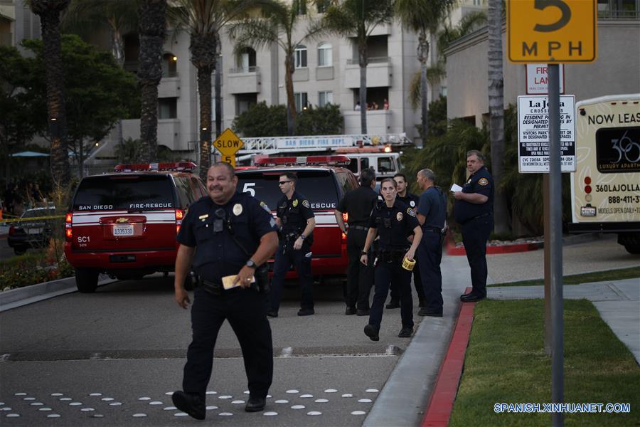 SAN DIEGO, mayo 1, 2017 (Xinhua) -- Elementos de la policía permanecen cerca del área donde se registró un tiroteo, en San Diego, Estados Unidos de América, el 30 de abril de 2017. Al menos ocho personas resultaron heridas el domingo en un tiroteo iniciado por un hombre que bebía cervezas en una piscina de la ciudad estadounidense de San Diego, informó el canal de televisión KFMB-TV. (Xinhua/Nelvin C. Cepeda/San Diego Union-Tribune/ZUMAPRESS)