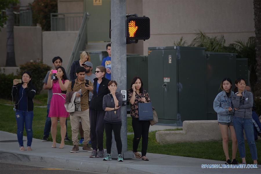 Personas permanecen cerca del área donde se registró un tiroteo, en San Diego, Estados Unidos de América, el 30 de abril de 2017. Al menos ocho personas resultaron heridas el domingo en un tiroteo iniciado por un hombre que bebía cervezas en una piscina de la ciudad estadounidense de San Diego, informó el canal de televisión KFMB-TV. (Xinhua/Nelvin C. Cepeda/San Diego Union-Tribune/ZUMAPRESS)