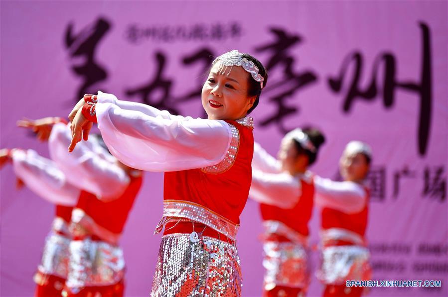 ANHUI, mayo 2, 2017 (Xinhua) -- Concursantes interpretan una danza cuadrada durante un torneo llevado a cabo en Bozhou, provincia de Anhui, en el este de China, el 2 de mayo de 2017. Más de 600 concursantes de 28 equipos de todo el país participaron en el torneo de danza cuadrada de dos días de duración que comenzó el martes. (Xinhua/Liu Qinli)