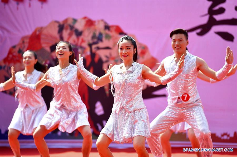 ANHUI, mayo 2, 2017 (Xinhua) -- Concursantes interpretan una danza cuadrada durante un torneo llevado a cabo en Bozhou, provincia de Anhui, en el este de China, el 2 de mayo de 2017. Más de 600 concursantes de 28 equipos de todo el país participaron en el torneo de danza cuadrada de dos días de duración que comenzó el martes. (Xinhua/Liu Qinli)