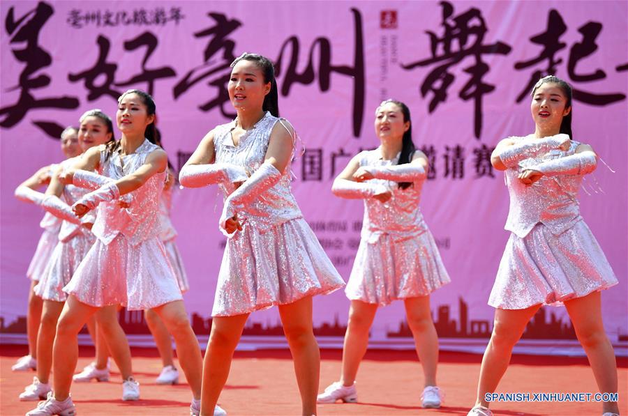 ANHUI, mayo 2, 2017 (Xinhua) -- Concursantes interpretan una danza cuadrada durante un torneo llevado a cabo en Bozhou, provincia de Anhui, en el este de China, el 2 de mayo de 2017. Más de 600 concursantes de 28 equipos de todo el país participaron en el torneo de danza cuadrada de dos días de duración que comenzó el martes. (Xinhua/Liu Qinli)