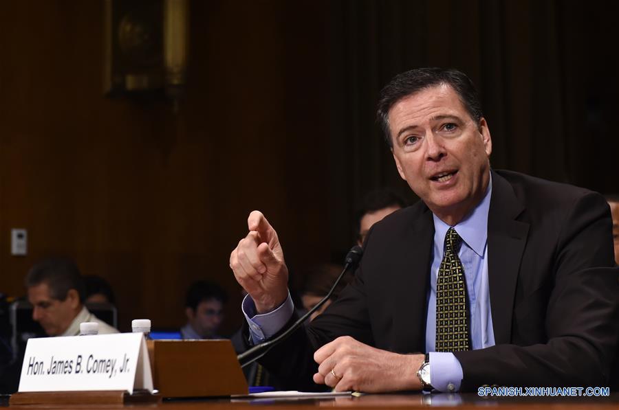 WASHINGTON, mayo 3, 2017 (Xinhua) -- El director del Buró Federal de Investigaciones (FBI, por sus siglas en inglés) de Estados Unidos, James Comey, testifica ante la audiencia bipartidista del Comité Judicial del Senado estadounidense, en el Capitolio en Washington D.C., Estados Unidos de América, el 3 de mayo de 2017. El director del FBI de Estados Unidos, James Comey, defendió el miércoles su decisión de dar a conocer antes de las elecciones de 2016 la investigación sobre los correos electrónicos de la entonces candidata presidencial demócrata Hillary Clinton. Comey declaró que enfrentó una difícil elección entre acciones "realmente malas o catastróficas" y que no lo podía ocultar. (Xinhua/Bao Dandan)