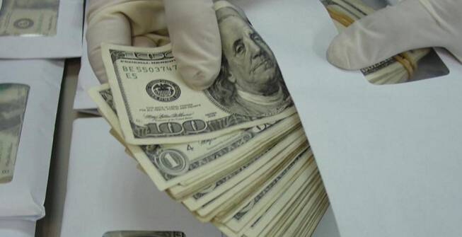 Imagen de archivo de un sobre con varios billetes de dólar (EFE)