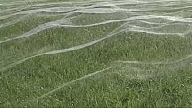 Wellington,09/05/2017(El Pueblo en Línea)-Una especie de gigantesco velo blanco ondea sobre la hierba en un parque cercano a la Bahía de Plenty, en Nueva Zelanda, formando olas como lo harían las aguas de un océano a causa de un viento suave. La imagen bascula entre la poesía y el horror, porque se trata en realidad de un conjunto de telara?as producidas por lo que parecen ser miles de peque?as ara?as.