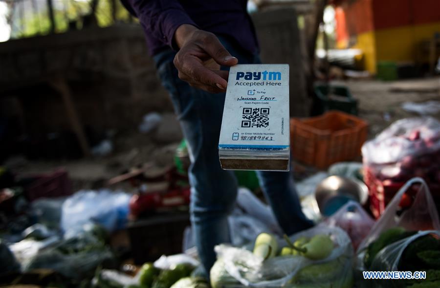 Un vendedor muestra el código bidimensional a un cliente que desea pagar con Paytm, una aplicación de pago patrocinada por la empresa matriz de Alipay, Ant Financial, en Nueva Delhi, India, 12 de abril de 2017. Es ya costumbre en China no llevar dinero en efectivo y pagar con un teléfono móvil, en que suelen estar instaladas las aplicaciones de Alipay o Wechat. Con un teléfono inteligente, la gente puede pagar en casi cualquier lugar, desde ir de compras, reparar el coche, pagar un taxi o registrarse en un hospital. En muchos otros países, el pago con Alipay y Wechat se está convirtiendo en una nueva tendencia. La empresa matriz de Alipay, Ant Financial Services Group o "Ant Financial", tiene más de 200 millones de usuarios en 25 países y regiones. Wechat, la mayor compa?ía de medios sociales de China, también ha penetrado en muchos países del mundo. (Xinhua / Ma Ping)