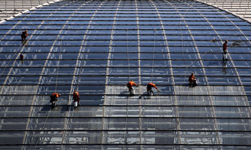 Un equipo de limpiadores de ventanas sanean la cúpula de titanio del Centro Nacional de Artes Escénicas de Beijing, en la capital china donde los líderes de 28 países asistirán al Foro Internacional de la iniciativa "Cinturón y Ruta", a celebrarse el 14 y 15 de este mes. (Foto: Archivo)