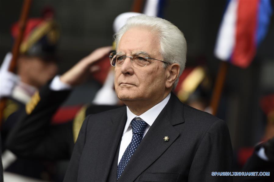MONTEVIDEO, mayo 11, 2017 (Xinhua) -- El presidente de Italia, Sergio Mattarella, participa durante una ceremonia de bienvenida en la Torre Ejecutiva, en Montevideo, capital de Uruguay, el 11 de mayo de 2017. Los presidentes de Uruguay e Italia, Tabaré Vázquez y Sergio Mattarella, respectivamente, expresaron el jueves su optimismo de que el Mercado Común del Sur (Mercosur) y la Unión Europea (UE) aprobarán este a?o un acuerdo de libre comercio. (Xinhua/Nicolás Celaya)