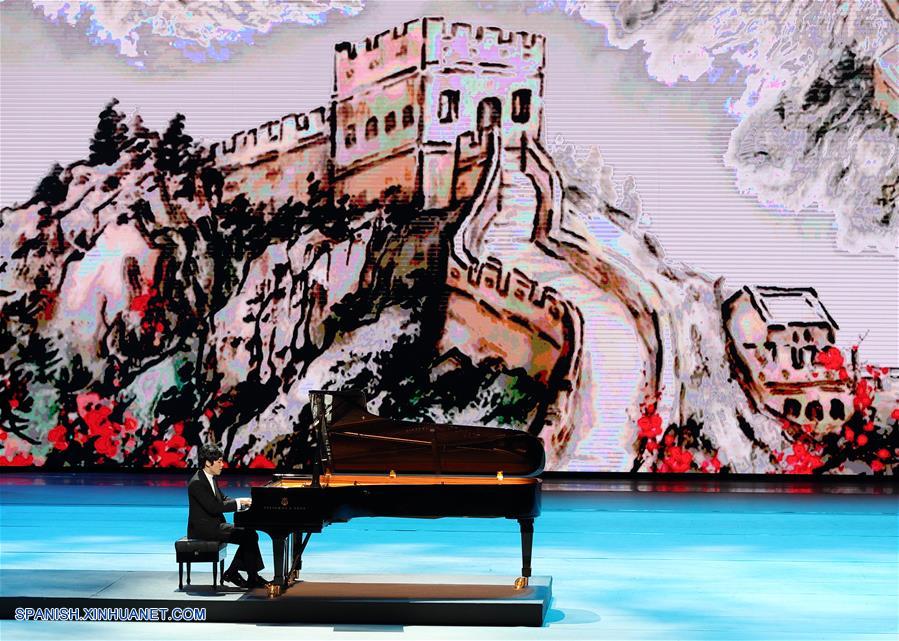BEIJING, mayo 14, 2017 (Xinhua) -- Un pianista toca durante la "Ruta Milenaria", una puesta en escena para el Foro de la Franja y la Ruta para la Cooperación Internacional, en el Centro Nacional para las Artes Escénicas en Beijing, capital de China, el 14 de mayo de 2017. (Xinhua/Wang Ye)