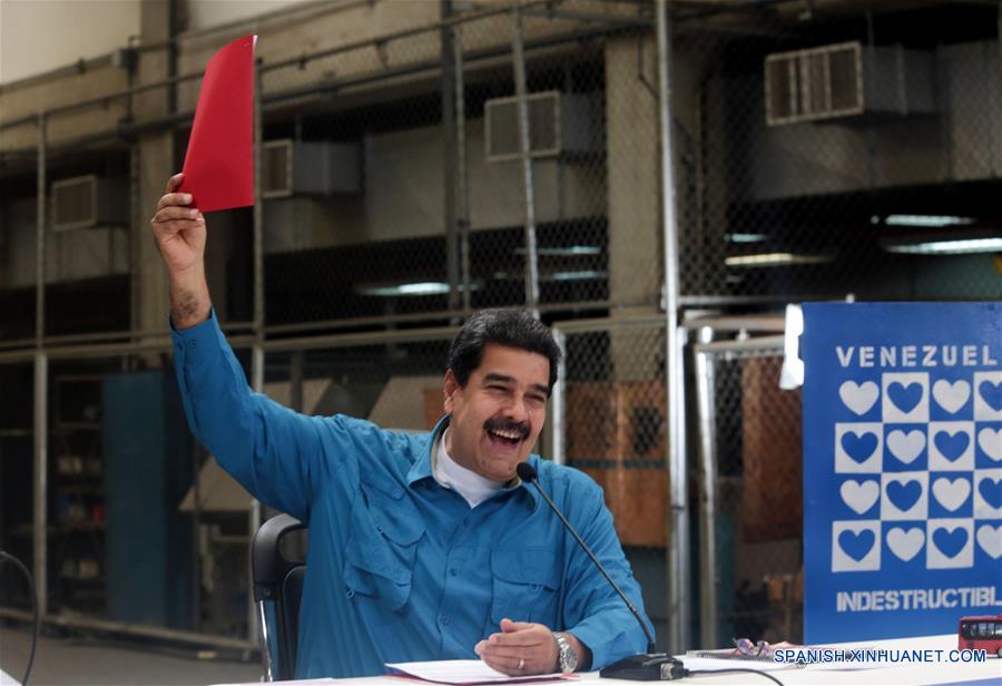 CARACAS, mayo 21, 2017 (Xinhua) -- Imagen cedida por la Presidencia de Venezuela, del presidente venezolano, Nicolás Maduro, participando durante su programa "Los Domingos con Maduro" transmitido desde el Metro de Caracas en Caracas, Venezuela, el 21 de mayo de 2017. De acuerdo con información de la prensa local, el presidente venezolano Nicolás Maduro aprobó el domingo la utilización de recursos para financiar la protección integral de los trabajadores del Metro de Caracas, reactivar los comedores, y dar mantenimiento al sistema. (Xinhua/Presidencia de Venezuela)