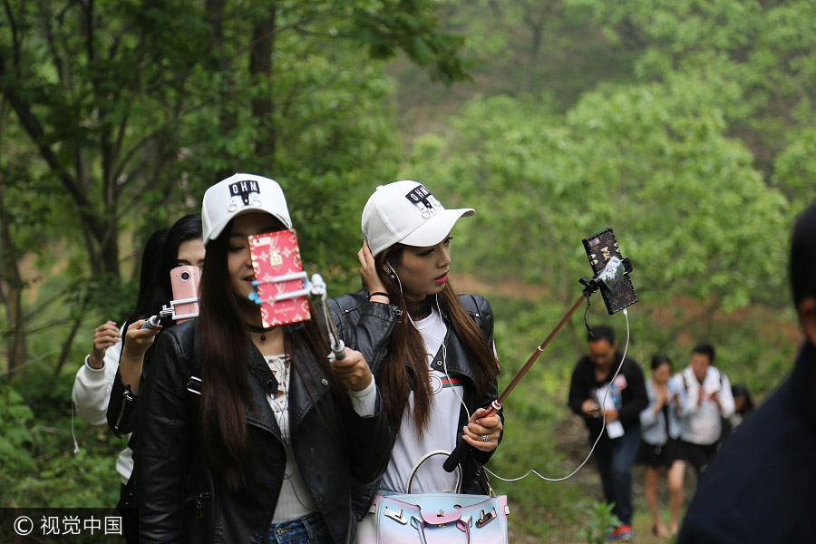 Rostros conocidos en las redes sociales chinas visitan los cultivos de té de la ciudad de Xinyang, provincia de Henan, para promover el té de Maojian de Xinyang durante sus transmisiones en vivo. [Foto: VCG]