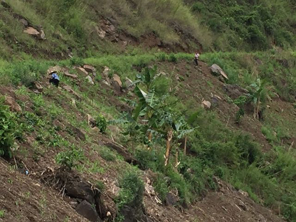 Los aldeanos cultivan en una ladera empinada en Naweng. [Foto: Xinhua]