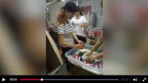 El video corrió como la pólvora durante el fin de semana. Se puede ver como una trabajadora lanza latas de Budweiser vacías a un fregadero, donde otros dos trabajadores parecen las llenan de un líquido oscuro que parece cerveza. Todos trabajan sin utilizar guantes y sin uniformes.