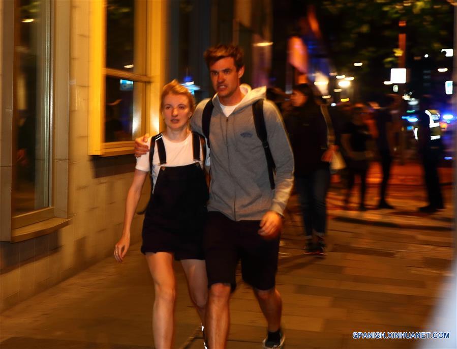 Personas son evacuadas cerca del Puente de Londres después de un incidente, en Londres, Reino Unido, el 3 de junio de 2017. La policía londinense dijo que los incidentes ocurridos el sábado por la noche en la capital británica son de carácter "terrorista". "A las 00:25 horas del 4 de junio de 2017, los incidentes en el puente de Londres y el mercado de Borough se han declarado como incidentes terroristas", dijo la policía en su cuenta oficial de la red social Twitter. (Xinhua/Xu Hui)