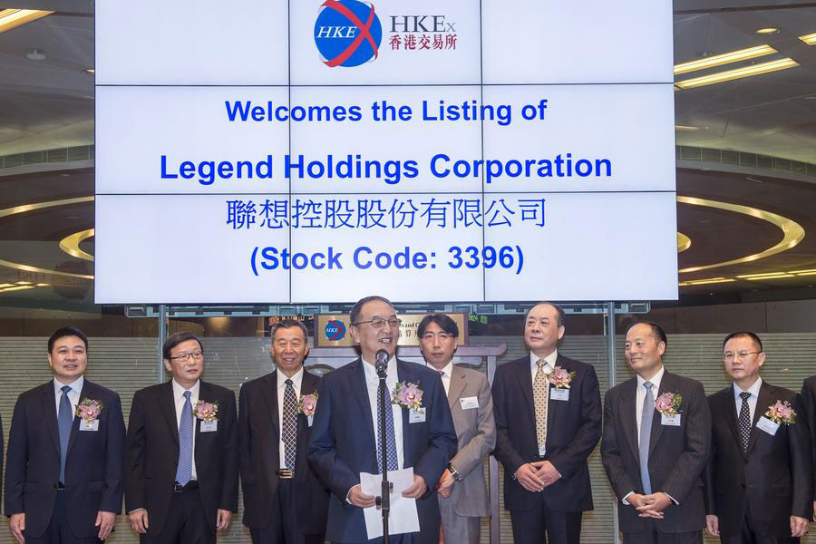Ceremonia de inscripción de Legend Holdings Corporation en la Bolsa de Hong Kong, el 29 de junio del 2015. [Foto: Xinhua]