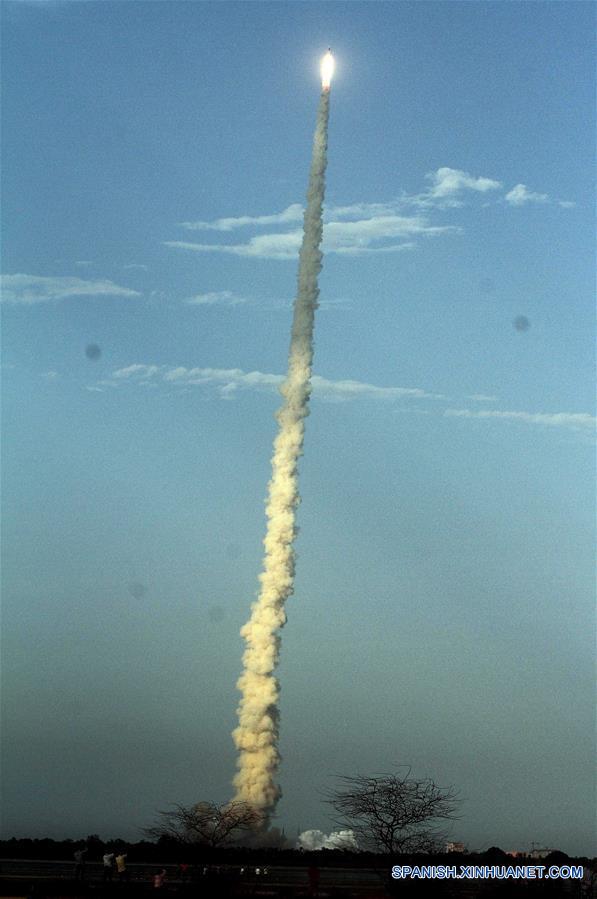 El cohete de manufactura nacional, llamado Vehículo de Lanzamiento de Satélites Geosincrónicos (GSLV) Mark III, despegó del centro sure?o espacial de Sriharikota en el estado Andhra Pradesh a las 17:28 hora local con un satélite a bordo.