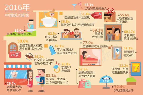 En una encuesta en línea realizada por Tencent a 50.000 usuarios anónimos sobre asuntos amorosos, un 47,1 por ciento respondió que no le importaba si su pareja había tenido sexo antes de conocerle. El resto afirmó lo contrario.