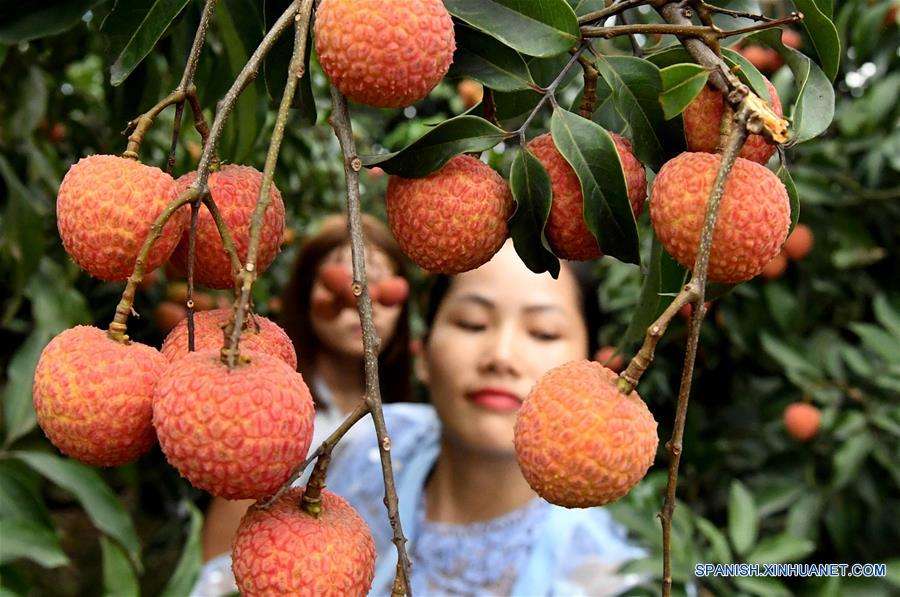 GUANGXI, junio 7, 2017 (Xinhua) -- Turistas recolectan litchi (Litchi chinensis), en el condado de Linshan, en la Región Autónoma Zhuang de Guangxi, en el sur de China, el 7 de junio de 2017. Los agricultores en el lugar comenzaron a cosechar el litchi recientemente. (Xinhua/Zhang Ailin)