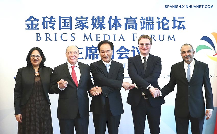 BEIJING, 7 jun (Xinhua) -- Líderes de medios de comunicación de países del BRICS (Brasil, Rusia, la India, China y Sudáfrica) discutieron hoy en Beijing las formas de tener una cooperación práctica en la reunión del presídium del Foro de Medios del BRICS.