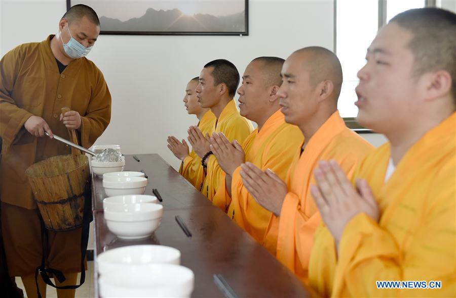 Los monjes cantan los sutras antes del almuerzo en el Colegio Budista del Monte Jiuhua, provincia de Anhui, 15 de junio del 2017. Esta destacado centro de ense?anza fue fundado en 1990. (Foto: Guo Chen)