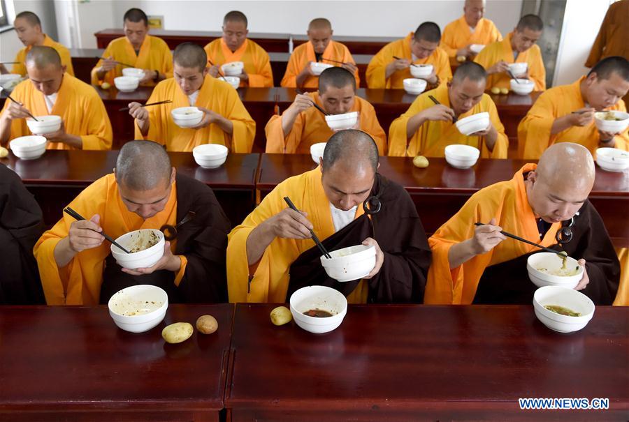 Los monjes almuerza en el Colegio Budista del Monte Jiuhua, provincia de Anhui, 15 de junio del 2017. Esta destacado centro de ense?anza fue fundado en 1990. (Foto: Guo Chen)