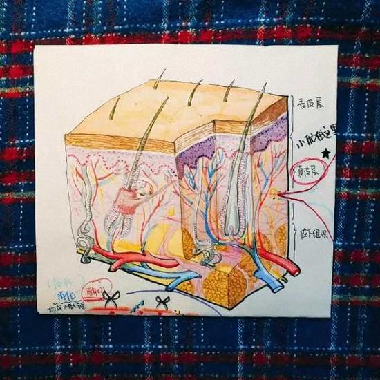 Una imagen de anatomía médica dibujada por Song Linlin. Después de graduarse, Song Linlin planea continuar su educación en el Centro Médico de China Occidental de la Universidad de Sichuan. Dijo que espera ser una doctora profesional y una artista aficionada en el futuro. [Foto proporcionada por Song Linlin]