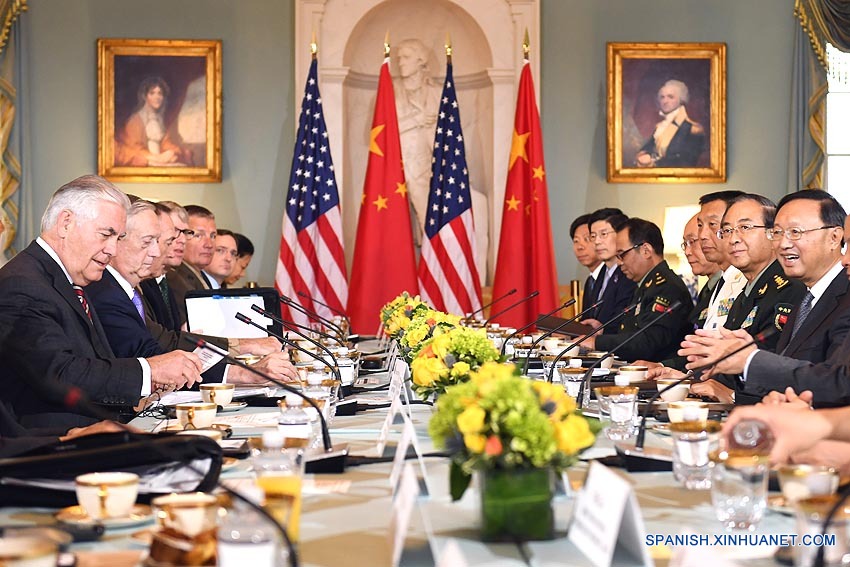 El consejero de Estado chino Yang Jiechi preside junto con el secretario de Estado, Rex Tillerson, y con el secretario de Defensa, James Mattis, el diálogo.