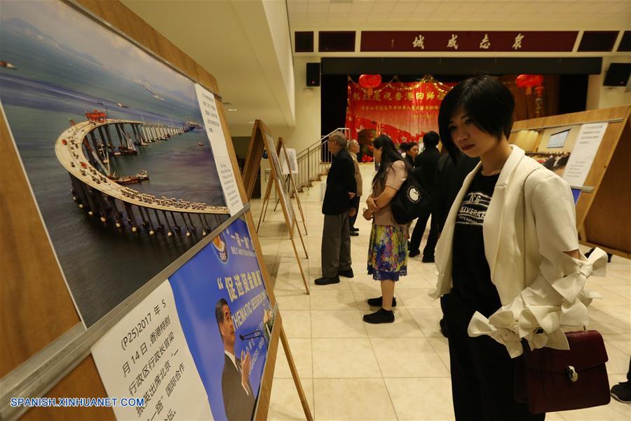CALIFORNIA, junio 24, 2017 (Xinhua) -- Visitantes observan una exposición fotográfica para conmemorar el 20 aniversario del retorno de Hong Kong a China, en San Francisco, California, Estados Unidos, el 24 de junio de 2017. La exposición mostró aproximadamente 60 fotografías cedidas por el Ministerio de Relaciones Exteriores de China para resaltar momentos históricos, así como la vida social y económica de Hong Kong, desde que China resumió el ejercicio de la soberanía sobre el territorio el 1 de julio de 1997. (Xinhua/Liu Yilin)