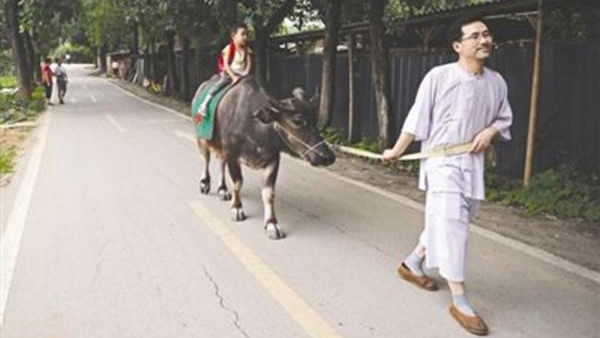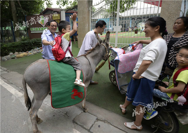 "Cuando monta en buey o en burro, el ni?o puede interactuar con el animal", según Chengdu Business Daily citando a Li Li.