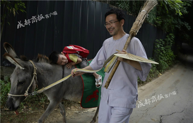 De hecho, el chico empezó a ir a la guardería sobre un buey el invierno pasado, que está a unos tres kilómetros de su casa, en Chengdu, capital de la provincia de Sichuan.
