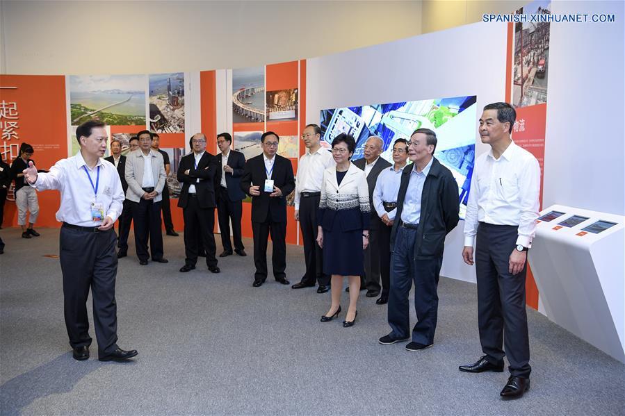 La exhibición, organizada por el gobierno de la RAEHK, tiene 10 áreas de exposición. Los líderes se mostraron interesados en las fotografías, gráficas y multimedia interactivos que muestran el desarrollo, oportunidades e interacción de Hong Kong con otras ciudades chinas.