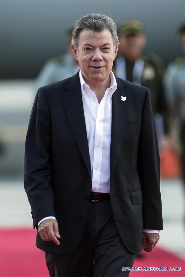 CALI, junio 29, 2017 (Xinhua) -- El presidente colombiano, Juan Manuel Santos, llega para participar en la XII Cumbre de la Alianza del Pacífico (AP), en el aeropuerto Alfonso Bonilla Aragón, en la ciudad de Cali, Colombia, el 29 de junio de 2017. El presidente colombiano, Juan Manuel Santos, afirmó el jueves que en la XII Cumbre de la Alianza del Pacífico se darán pasos importantes para cumplir con los objetivos del bloque comercial. "Para Colombia es un verdadero honor y un privilegio ser anfitrión de esta Cumbre de la Alianza del Pacífico", dijo el mandatario tras arribar a la ciudad de Cali para reunirse con sus homólogos de Chile, Michelle Bachelet; México, Enrique Pe?a Nieto, y Perú, Pedro Pablo Kuczynski. (Xinhua/Jhon Paz)