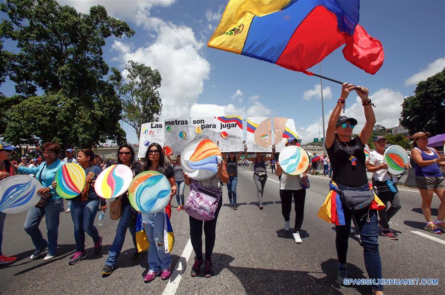 Opositores al Gobierno cierran la autopista Francisco Fajardo a la altura del distribuidor de los Ruices durante una marcha convocada por la coalición opositora Mesa de la Unidad Democrática (MUD), en Caracas, capital de Venezuela, el 1 de julio de 2017. La MUD convocó el sábado a una marcha en rechazo del antejuicio de mérito pautado por el Tribunal Supremo de Justicia (TSJ) contra la fiscal general de la República, Luisa Ortega Díaz, y que podría destituirla de su cargo, de acuerdo con información de la prensa local. (Xinhua/Boris Vergara)