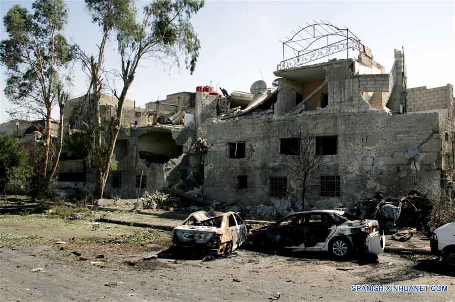 DAMASCO, julio 2, 2017 (Xinhua) -- Vista del sitio de una explosión en Damasco, capital de Siria, el 2 de julio de 2017. Al menos ocho personas murieron y otras 20 resultaron heridas el domingo por las explosiones de tres coches bomba en la ciudad de Damasco, la capital siria, informó una fuente militar a Xinhua. (Xinhua/Amman Safarjalani)