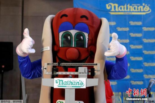 NUEVA YORK, 4 jul (Xinhua) -- Un estadounidense de 33 a?os de edad estableció hoy un récord mundial al devorar 72 hot dogs en 10 minutos en un concurso anual realizado en Nueva York.