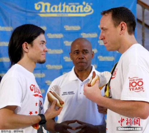 Joey Chestnut ganó el famoso concurso internacional anual número 101 de comedores de hot dogs que hoy atrajo a competidores de todo el mundo a Coney Island en Nueva York.
