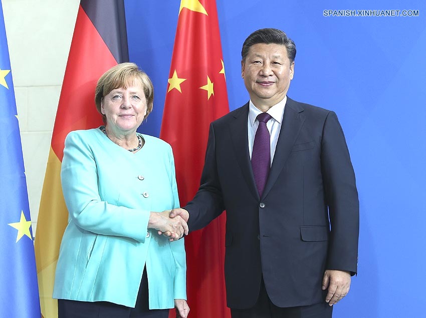 BERLIN, 5 jul (Xinhua) -- El presidente de China, Xi Jinping, y la canciller de Alemania, Angela Merkel, acordaron hoy en Berlín elevar las relaciones entre China y Alemania a niveles nuevos y mayores.