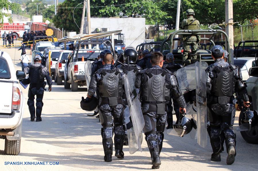 Elementos de diversas corporaciones de seguridad llegan al Centro de Readaptación Social luego del enfrentamiento entre reos ocurrido durante la madrugada, en el puerto de Acapulco, en el estado de Guerrero, México, el 6 de julio de 2017. (Xinhua/David Guzmán)