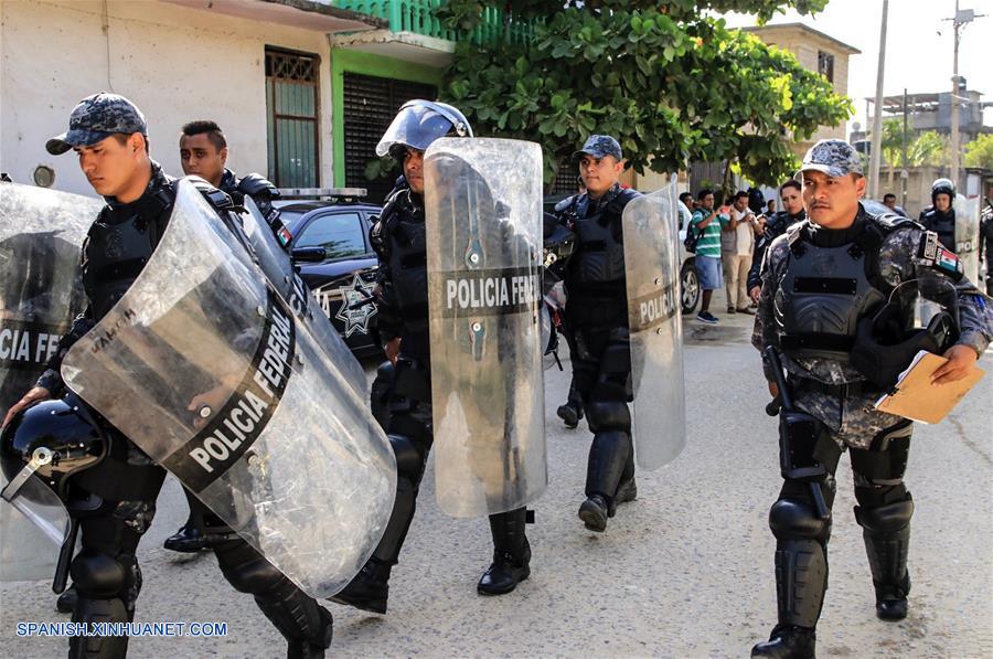 Policías federales se dirigen al Centro de Readaptación Social luego del enfrentamiento entre reos ocurrido durante la madrugada, en el puerto de Acapulco, en el estado de Guerrero, México, el 6 de julio de 2017. (Xinhua/David Guzmán)
