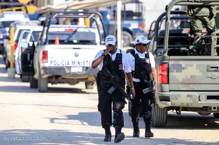 Elementos de la agrupación Fuerza Conago acuden al Centro de Readaptación Social luego del enfrentamiento entre reos ocurrido durante la madrugada, en el puerto de Acapulco, en el estado de Guerrero, México, el 6 de julio de 2017. (Xinhua/David Guzmán)