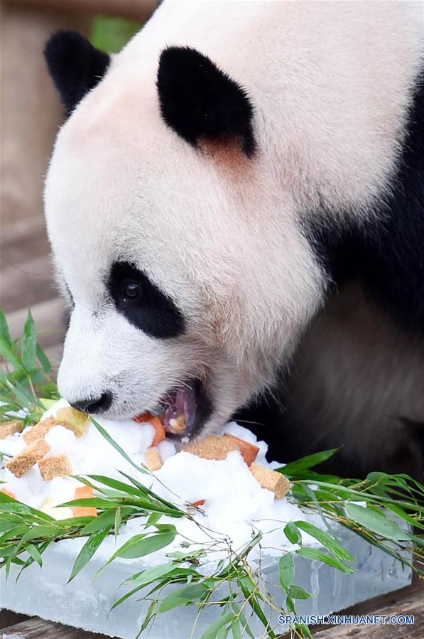 YONGIN, julio 12, 2017 (Xinhua) -- El panda gigante chino "Le Bao" se alimenta de su "comida de cumplea?os" en el Zoológico de Everland, en la ciudad de Yongin, República de Corea, el 12 de julio de 2017. El cumplea?os para uno de los dos pandas gigantes, arrendados por China, fue celebrado el miércoles en el Zoológico de Everland, el mayor parque temático de República de Corea localizado en Yongin, a 40 kilómetros al sur de la capital Seúl. (Xinhua/Newsis)