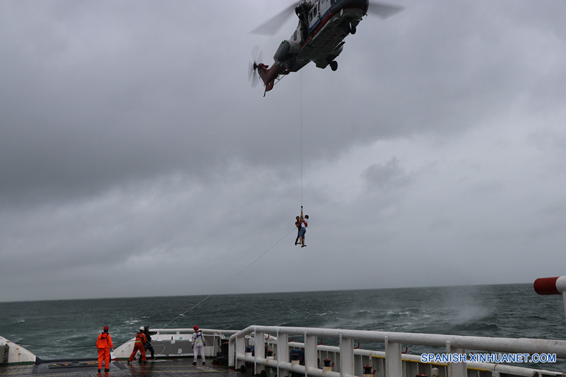 GUANGDONG, julio 16, 2017 (Xinhua) -- Rescatistas transfieren a turistas atrapados de la isla de Nanpeng, a cerca de 35 kilómetros al este de Zhapo, en la ciudad de Yangjiang, en la provincia de Guangdong, en el sur de China, el 16 de julio de 2017. Cuarenta y nueve turistas que estaban atrapados en la isla de Nanpeng, en el Mar Meridional de China, fueron evacuados a lugares seguros la ma?ana del domingo, informaron las autoridades. (Xinhua/Str)