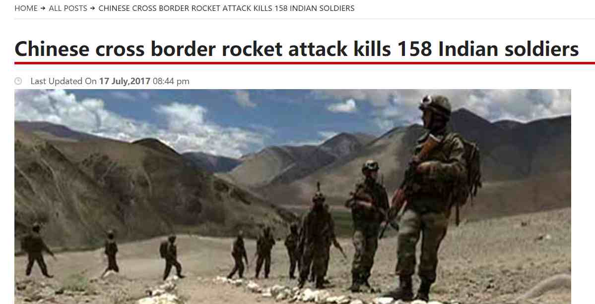 Beijing, 19/07/2017 (El Pueblo en Línea) -Los principales medios de comunicación chinos refutaron la información "infundada" de los medios de comunicación paquistaníes, según la cual más de 150 soldados indios murieron en Sikkim debido a un ataque con cohetes chinos.
