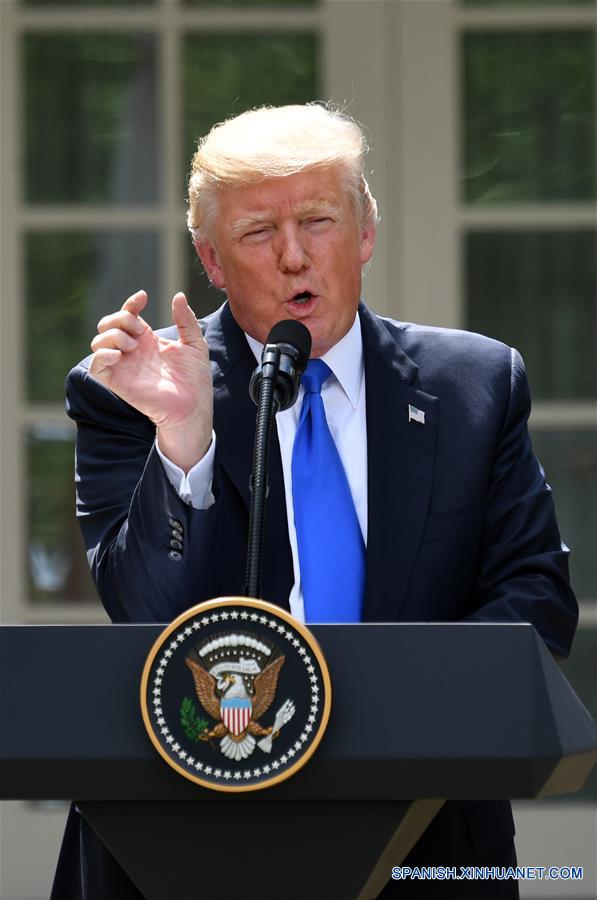 WASHINGTON D.C., julio 25, 2017 (Xinhua) -- El presidente estadounidense, Donald Trump, participa en una conferencia de prensa conjunta con el visitante primer ministro libanés, Saad Hariri, en la Casa Blanca, en Washington D.C., Estados Unidos, el 25 de julio de 2017. El presidente de Estados Unidos, Donald Trump, dijo el martes que no permitirá al presidente de Siria, Bashar al-Assad, salirse con la suya por las "terribles" acciones que ha cometido. (Xinhua/Yin Bogu)