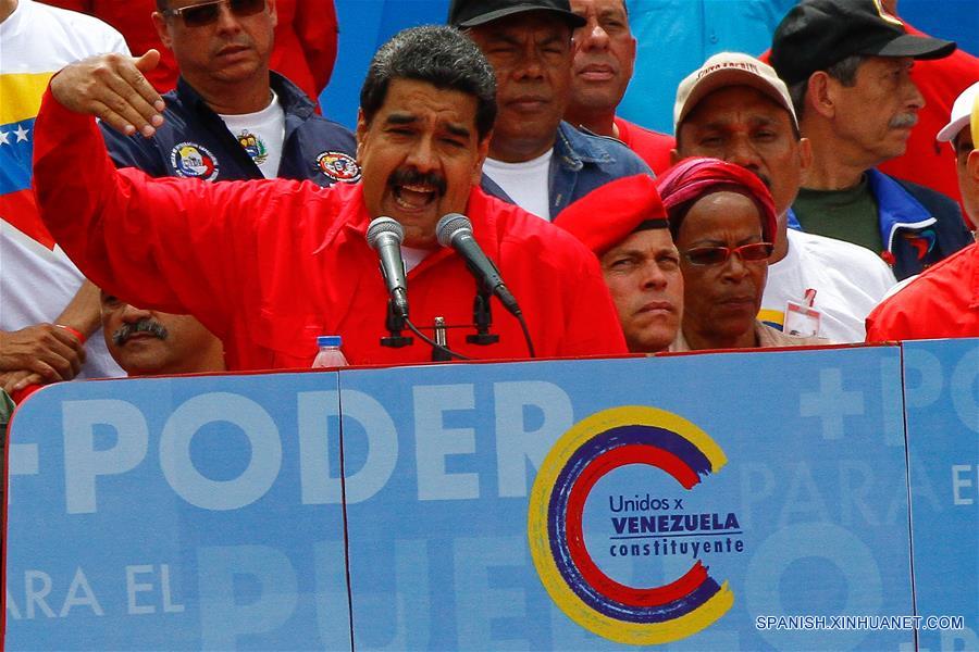 CARACAS, julio 27, 2017 (Xinhua) -- El presidente venezolano, Nicolás Maduro (frente), participa en el cierre de campa?a de la Asamblea Nacional Constituyente (ANC), en Caracas, Venezuela, el 27 de julio de 2017. El presidente de Venezuela, Nicolás Maduro, advirtió el jueves a la alianza opositora Mesa de la Unidad Democrática (MUD) que, tras instalarse la Asamblea Nacional Constituyente (ANC), luego del 30 de julio, habrá un diálogo "obligatorio" entre las partes. Durante el acto general de cierre de la campa?a constituyente, en Caracas, Maduro reiteró a la dirigencia opositora su disposición de instalar un mesa de diálogo, previo a la ANC que se elegirá el domingo próximo. (Xinhua/Boris Vergara)