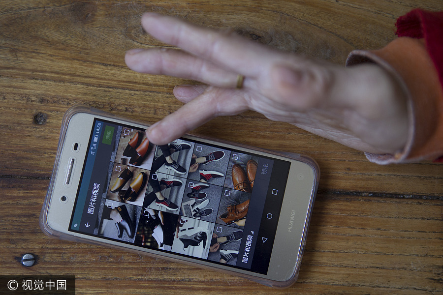 Zhong Huayin, mujer discapacitada, viuda y madre de un ni?o de 5 a?os, promociona nuevos productos en su cuenta de WeChat. Ella reside en Jiaxing, provincia de Zhejiang. [Foto: VCG]