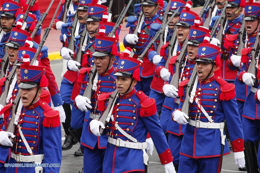 Miembros de las Fuerzas Armadas peruanas participan durante la Gran Parada y Desfile Cívico-Militar, en el marco de las celebraciones del 196 Aniversario de la Independencia de Perú, en la ciudad de Lima, Perú, el 29 de julio de 2017.(Xinhua/Luis Camacho)