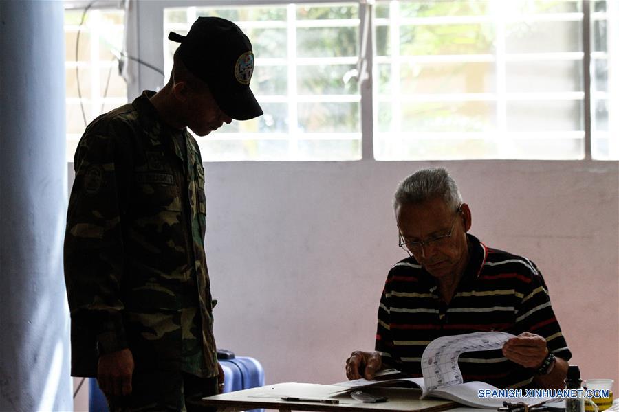 CARACAS, julio 30, 2017 (Xinhua) -- Un militar participa durante la elección de la Asamblea Nacional Constituyente (ANC), en un centro de votación en la Unidad Educativa Fermín Toro en Caracas, Venezuela, el 30 de julio de 2017. La rectora del Consejo Nacional Electoral (CNE) de Venezuela, Socorro Hernández, informó que, pasadas las 9:30 hora local, se ha aperturado el 93 por ciento de las mesas dispuestas para la elección de la Asamblea Nacional Constituyente (ANC) que se efectúa el domingo. (Xinhua/Boris Vergara)