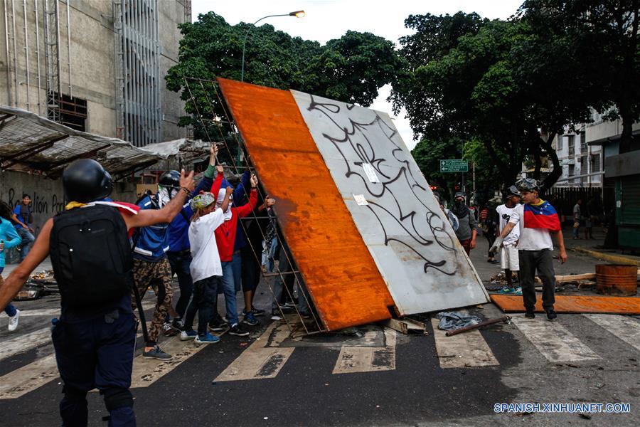 CARACAS, julio 30, 2017 (Xinhua) -- Manifestantes participan en una protesta en rechazo a la Asamblea Nacional Constituyente (ANC), en Caracas, Venezuela, el 30 de julio de 2017. Tras una jornada comicial de 13 horas, a las 19:00 hora local, comenzaron a cerrar los centros de votación habilitados por el Consejo Nacional Electoral (CNE) de Venezuela para las elecciones de Asamblea Nacional Constituyente (ANC). El proceso se extendió por una hora más, de acuerdo con el anuncio de la rectora del CNE, Sandra Oblitas, quien también indicó que los puntos electorales que tengan presencia de venezolanos en filas para votar, permanecerán abiertos. (Xinhua/Boris Vergara)